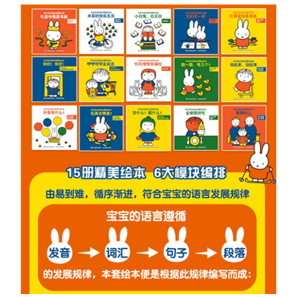 15册精美绘本,内容丰富,充分满足宝宝语言学习的需求。