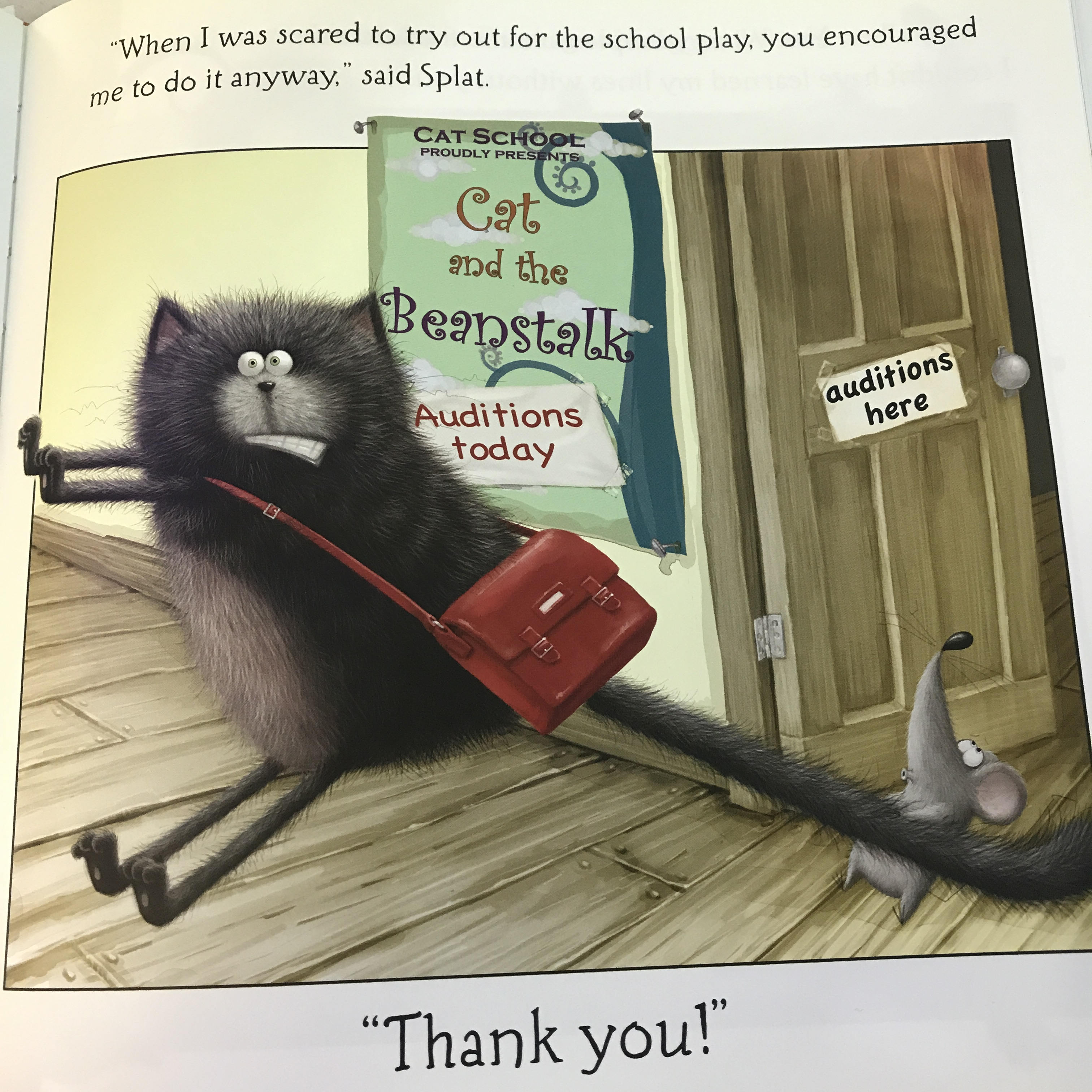 Splat the Cat is back with a new adventure. This time he'ssaying thank you for all the fun he's had with his mouse friend,Seymour! Seymour needs cheering up, and Splat wants to help. So hecreates not just a thank- you card, but a whole thank-you book. Thebook lists all the sweet and funny reasons why Splat is thankfulfor their friendship. The heartwarming story, lively illustrationsand laugh-out-loud text will leave you thankful that you picked upthis book!