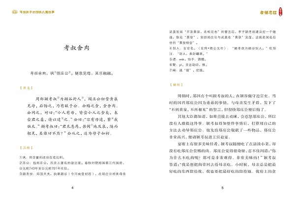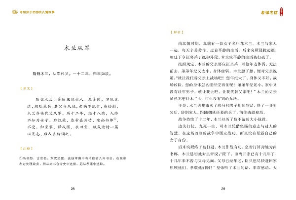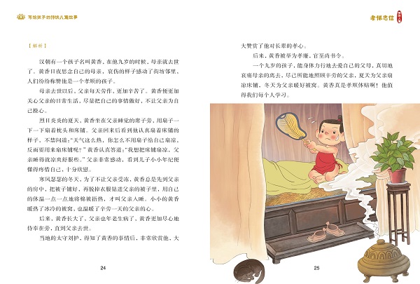 本书通过讲述古代圣贤“孝、悌、忠、信”的故事,引导孩子孝敬父母,友爱兄弟,热爱祖国,正直诚信,提升综合素养,坚定文化自信。 弘扬中华民族传统美德,宣传正能量,值得每个孩子认真品读 全新打磨,精选适合当下孩子阅读的故事 重新按照朝代顺序编排,有利于帮助孩子理清历史脉络 精美插图,帮助孩子深刻理解故事内涵 生字注音,生词注释,文言文原文和现代故事解析相结合,帮助孩子提高古文阅读兴趣和水平