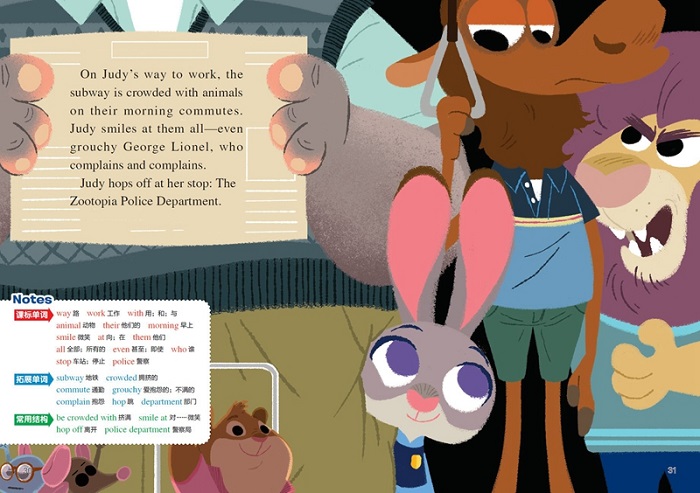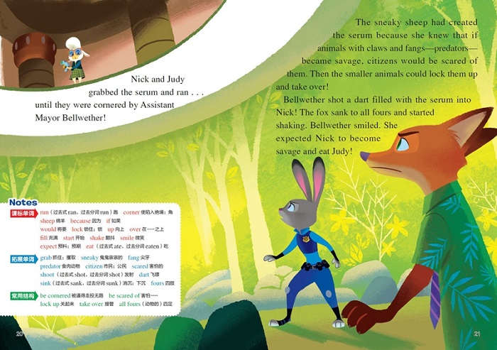 这是一本少儿英语书。本书在整体设计上充分考虑了语言学习的专业性、渐进性和持续性,在保持原版英语的基础上,还增加了每页notes、单词表、中文译文等编辑页,并附有线上美音朗读音频,旨在帮助读者扫清阅读障碍,是中国孩子英语学习的重要阅读材料。本书包含《疯狂动物城》和《失踪的冰棒》两个“疯狂动物城”故事。