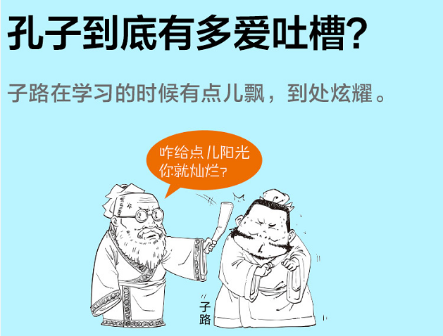 孔子原来这么爱吐槽!作者用漫画和段子的方式讲述孔子和弟子们的故事,一边展示他们的花式卖萌和吐槽,一边串讲《论语》里的经典章句,在哈哈大笑中学到《论语》里的人生哲理。 为什么颜回一生贫困潦倒,没做过什么大事,却获得了孔子“不迁怒,不贰过”的赞赏,并成为孔子最喜欢的学生? 我们耳熟能详的“知之为知之,不知为不知,是知也”,其实是孔子对子路学习态度不端的吐槽? 宰我到底做了什么,逼得孔子爆出了“朽木不可雕也,粪土之墙不可圬也”这样的粗口? 全书由《论语》研究专家审校,随书赠送人物闪卡和《<论语>必读章句手册》,句句都是人生哲理。 翻开本书,看孔子和弟子们卖萌吐槽,人生哲理全学到!