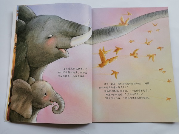 晚上睡觉前,大象妈妈在小象艾利的额头上轻轻吻了一下,温柔地说道:“好好睡吧,我的小宝贝,做个好梦!”艾利觉得特别有安全感,但不知什么原因,他突然显得有点不安。“妈妈,我到底能在你身边待多久?”“很久很久!”大象妈妈呵欠连天地回答说。“很久很久是多久呢?”艾利追问道。