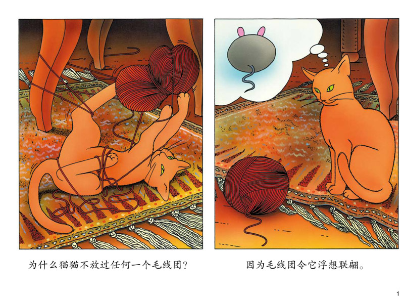 五本图画书,画面已经相当精彩,精妙的语言更是画龙点睛。法语原著精妙,那么翻译成中文也要精妙!我可是绞尽脑汁,反复推敲,尽量用简短精炼的中文表达作者埋下的笑点,要妙趣横生,又必须点到为止,让读者自己在思索中体会法国的幽默。“冰天雪地中,机灵的企鹅也许会想到买台取暖器吧?所幸它们没那么机灵!”为什么说“所幸”?“企鹅一次只能抓一条鱼吗?可不只一条!”到底是几条?“如果猴子坐得住,在键盘上敲个几万年,没准儿也能打出莎士比亚那样的杰作呢!”真的吗 ?哈哈,自己看去吧!