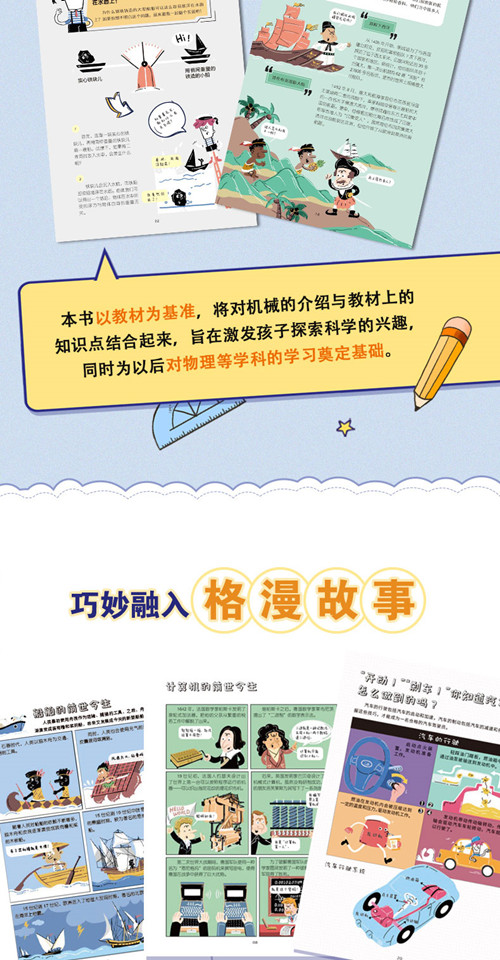 本套图书选取了10种具有代表性的机械进行介绍,包括《这就是飞机》《这就是船舶》《这就是潜艇》《这就是汽车》《这就是机器人》《这就是高铁》《这就是无人机》《这就是火箭》《这就是计算机》《生活中的机械》。为了拉近与小读者的心灵距离,增加互动性和趣味性,“克克罗”的男孩儿IP形象,贯穿全书,时而陪伴读者阅读故事,时而引领读者探索原理,时而提出疑问启发读者思考。在表现形式上,本书用漫画讲述机械的发展史和广泛应用等内容,用插画揭秘机械的构造原理;在内容上,融入“中国智造”元素,展现中国在不同领域的发展成果,并结合教材,对相应的知识点进行讲解,同时选取容易令孩子好奇的问题列为标题,以激发孩子的好奇心和阅读兴趣,语言通俗简练,插画生动有趣。通过对本套图书的阅读,孩子将了解人类在机械制造方面的伟大智慧,增强民族自豪感,产生对机械的探索兴趣,并为以后学习数理化等学科奠定基础。