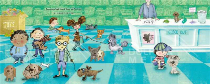 富有表现力的插图和简单的对话为读者呈现了一个甜蜜的故事,一个关于特别的小男孩和小狗找到彼此的故事。