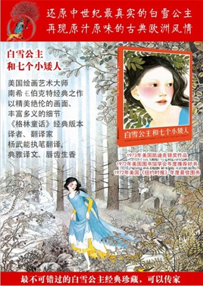 在众多“白雪公主和七个小矮人”中,这本荣获1973年凯迪克银奖的图画书堪称是经典中的经典,富含了艺术鉴赏、文化宗教等方面的知识。此次中译本力求在文图两方面完美呈现,不仅有国内知名图画书画家姬华老师解读原汁原味的插画,更有中国知名翻译家杨武能老先生的译作,给孩子们的阅读书单添上一份经典佳作,也为绘画艺术爱好者们奉上一本值得不断品读的藏本。