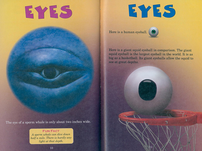 抹香鲸的眼睛只有2英寸宽。它们可以跳入水域半英里深,那里几乎没有光亮。