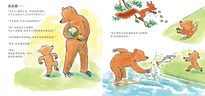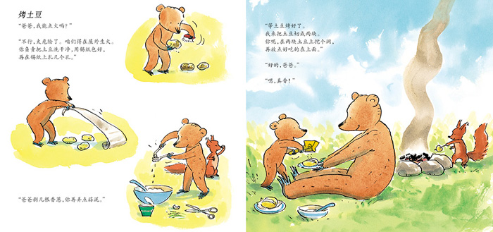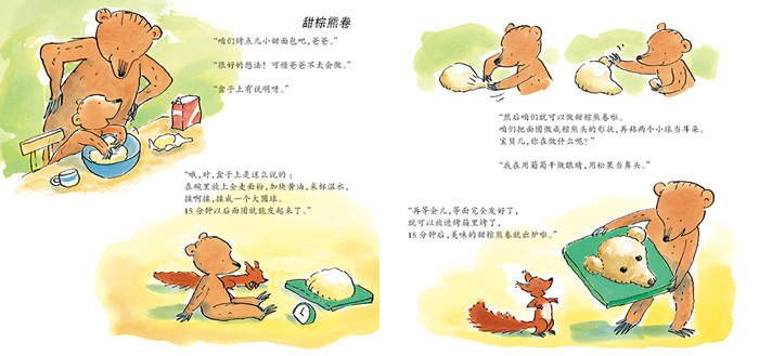 于是熊爸爸和小熊开始忙活,他们做了好多好吃的东西: