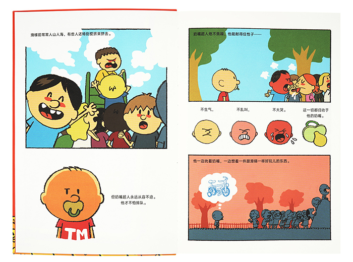 奶嘴超人是一个总戴着奶嘴的小男孩,奶嘴能帮助他集中注意力,激发解决问题的灵感,培养耐心。但是很多人看他戴着奶嘴,都想让他把奶嘴取下来,为此给小男孩制造各种为难。全书共含16个小故事,讲述的都是奶嘴超人在面临诸种困难或者挑战,思考解决问题之道,并成功把问题解决了的故事。以此激励孩子勇敢做自己,追求自己想追求的,并勇于迎接挑战的精神。