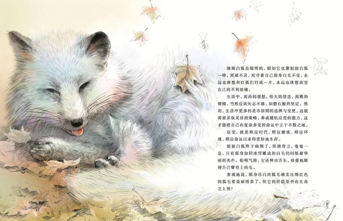 《沈石溪画本》中的图画,均采用铅笔淡彩的手法精描细绘,与文字相辅相成,完美交融。读者不仅能阅读到扣人心弦、跌宕起伏的精彩故事,同时也能欣赏到栩栩如生、惟妙惟肖的精美图画,阅读会变成一种轻松而愉快的享受。而这样的阅读,会让读者回味无穷,也会激发对生命的感悟,对生存的思考。