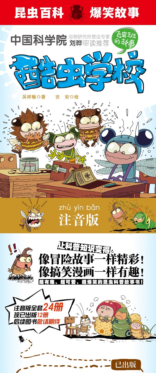 《酷虫学校》系列图书销售销量超百万册!版权输出法国、韩国、越南、泰国、港澳台繁体版,被当地小朋友誉为“超好玩的科普故事书”!