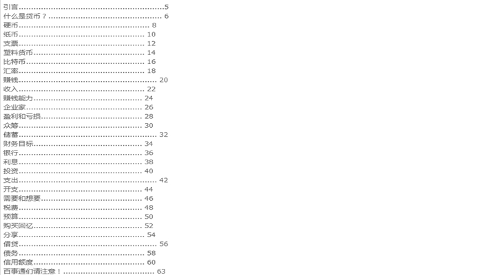 这是一本帮助小朋友理解钱以及金融基本概念的知识性绘本。金融似乎是大孩子才学的知识,对于小朋友来说有些艰深。但其实它是社会生活的基础常识、小朋友在生活中就会有所接触,只是很少人能用简单明了的方式给孩子系统讲清楚金融的体系和知识点。本书从讲解概念切入,用20+概念将金融知识构建起来,通过分门别类的概念、幽默的插图、生动的例子,深入浅出让孩子理解生活中的金融、理财的基本观念,完成小公民的通识教育。