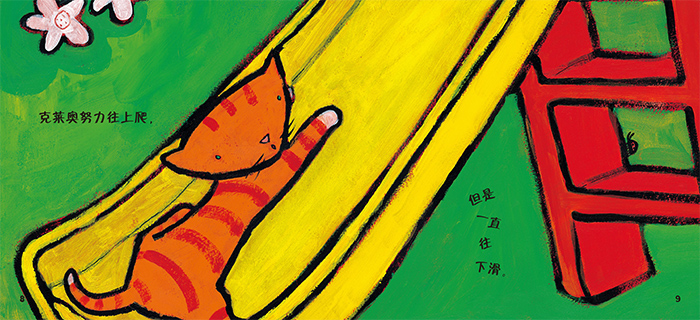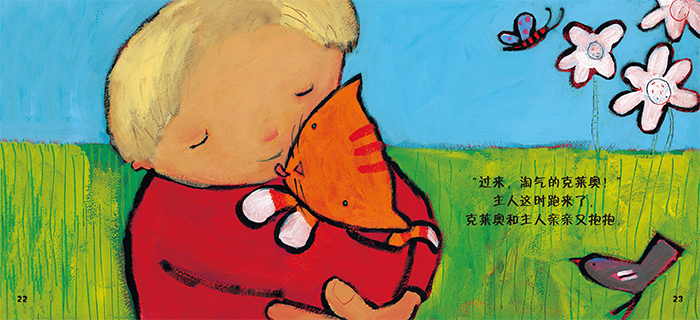 《克莱奥的一天》: “小小聪明豆绘本·小猫克莱奥”系列是专为0-3岁孩子打造的亲子阅读绘本,囊括亲情、自然、社会交往、运动等生活启蒙主题,以及数字、艺术等认知启蒙主题。该书为系列中的一本,主题为“感知自然的美好”。克莱奥有了新家,她每天跟主人一起起床,不过她特别喜欢四处乱逛。她喜欢玩滑梯、爬树、逗鸟、追蝴蝶,还喜欢打滚、跳来跳去,但只要主人一叫,她就立刻跑到主人温暖的怀抱中,并给主人一个大大的亲亲。