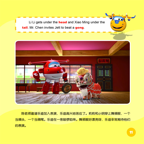“超级飞侠双语图画故事书”共10册,包含20集动画片内容。它讲述了运输飞机乐迪和他的小伙伴们为世界各地的小朋友送包裹,并帮助他们解决难题、实现梦想的故事。每一个故事里,乐迪都会去不同的国家或城市,展现世界的多元文化。