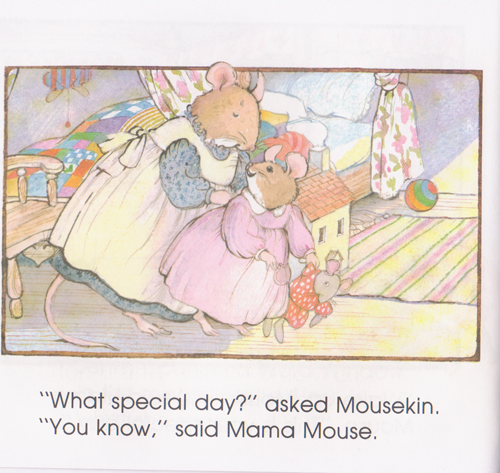 Mousekin s mommy reminds her it is a special day, but the little mouse cannot seem to figure out why.