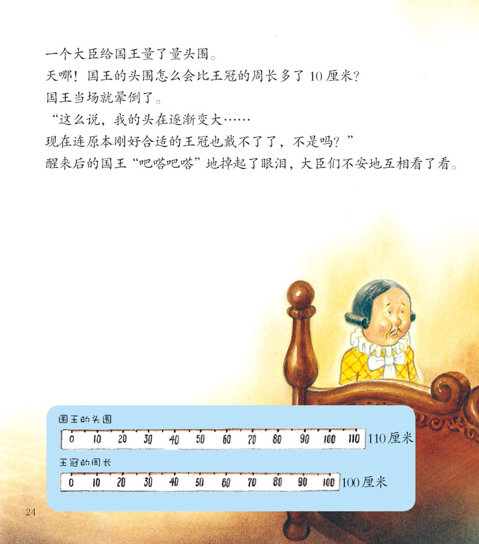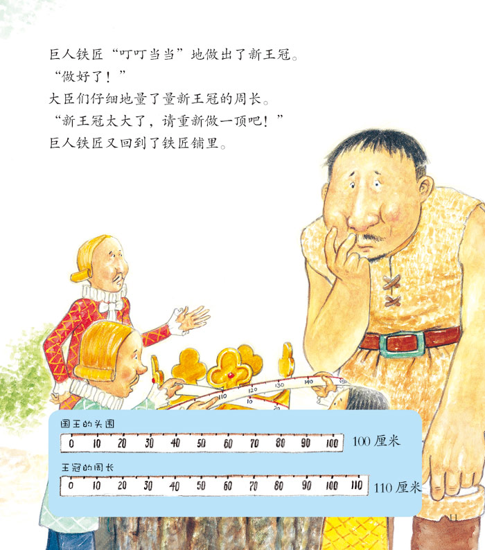 大头国王一直很苦恼,因为他的头很大很大。现在,大头国王让大臣们去给自己选一顶新王冠。大臣们找到了一个技术很棒的铁匠,让铁匠给国王打一顶合适的王冠。这可难坏了铁匠,王冠一会儿做大了,一会儿做小了,一会儿做重了……铁匠能做成正好合适的新王冠吗?