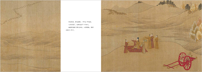 为孩子介绍了更多画卷背后的知识:文姬归汉时乘坐的大车前后有什么变化?文姬鸿雁传书的信件是写给谁的?为什么队伍中常常有无人乘骑的马?让孩子带着探索与好奇感受长卷中国画的无尽魅力。