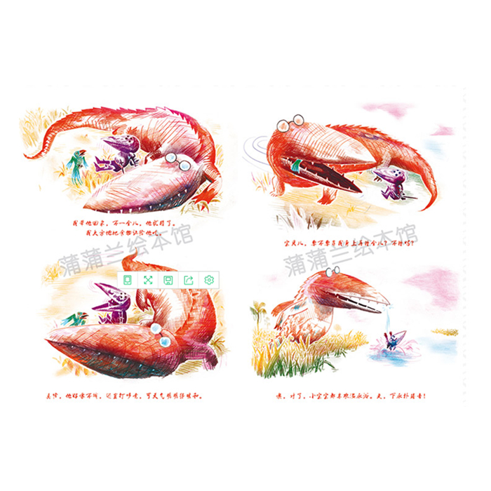 盖伊唐·多雷米擅长在幻想与现实之间,制造一种欢乐的误解从而构建故事。在一番充满野趣的相处之下,小男孩体验了野生动物的快乐与不易,老鳄鱼也体验了一把人类文明的智慧。于是,这两种不同的存在从相互发现,到相互对抗,*终彼此相知。相遇——相处——分离——回归——分离——重逢,这部绘本如图画小说般精巧细腻地描述了亲情或友谊的复杂性。如孩子与父母之间的关系,孩子长大会与父母分离,并沿着自己的道路继续前行,但爱和亲密的关系依然存在。这本书也探讨了偶然因素的出现对我们原本生活轨迹的影响。