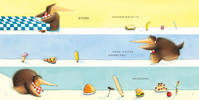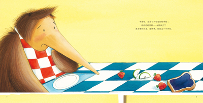 《谁抢了安东尼的蛋糕》的作者是英国著名艺术家杰玛雷诺,他是个太有想象力的画家。他笔下的食蚁兽似像非像,故事真正的主人公蚂蚁居然没出现过几次。然后他把故事的主题直接定位在“分享”上,给了读者好多的正能量。这里特别要说明的是,种子绘本另外还出版了杰玛雷诺的另外两个绘本,其绘画风格完全和“食物”不同,尽显作者的特别能力。