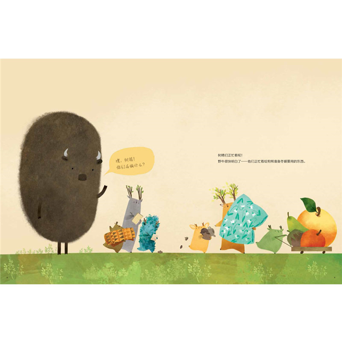 森林里所有重要的事情都是由神奇的小树精管理的。现在他们正准备去拜访那些在冬天睡觉的动物,但也有一些动物在冬天不睡觉。野牛在雪地里漫游寻找食物。当他在冰天雪地的外面觅食时,他想不到还会有人可以安全地睡在一个小窝里——直到他遇见了那只准备冬眠的熊……