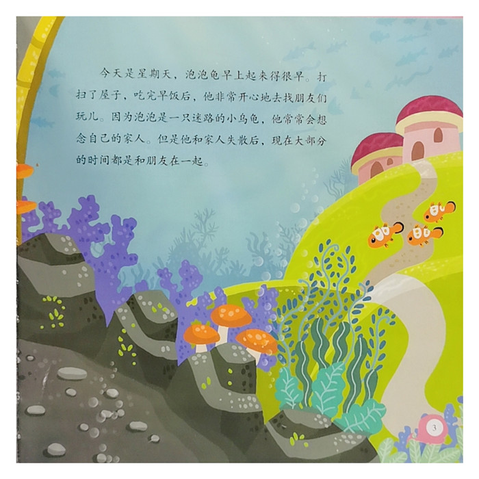 《泡泡龟海底历险记》是一套系列图书,以12个生动有趣的小故事,为孩子们呈现出一只小乌龟独自成长的经历。小鸟龟泡泡在海底游玩时,遇到了一阵旋涡后,与家人失散了。在迷途中,小鸟龟遇到了善良可爱的朋友们:多利(海豚)、贝贝(河豚)、卡卡(螃蟹)、可可(海星)、闪闪(电鰻)、卡米(章鱼),他们互相帮助,一起玩耍,一起愉快地生活。在丰富多彩的海洋世界里,孩子们可以跟随着泡泡龟的历险过程学会成长,用爱与尊重去包容和理解他人,培养良好的道德观和优秀价值观。