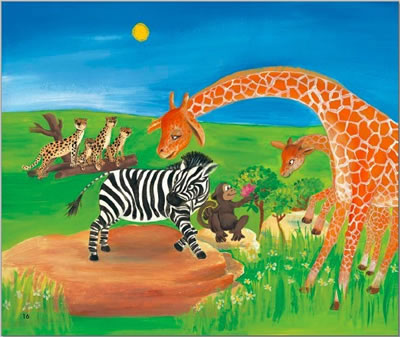 2.色彩柔和明丽,形象夸张独特,绘画风格热情奔放,充满儿童情趣。