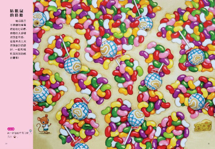 这是我社出版的启发精选幼儿互动游戏书系列之一,适合3-6岁儿童阅读和玩耍。小白兔最喜欢玩的游乐园里的旋转木马,可是她找不到在哪里,你能帮忙找到吗?酷酷熊在动物园里走了一上午,需要冰激凌来消暑,你能快速帮他找到卖甜筒的冰激凌店吗?咕叽鼠很喜欢吃奶酪,你知道奶酪在哪里吗?快来一起动动脑帮助这些小动物来寻找发现吧。