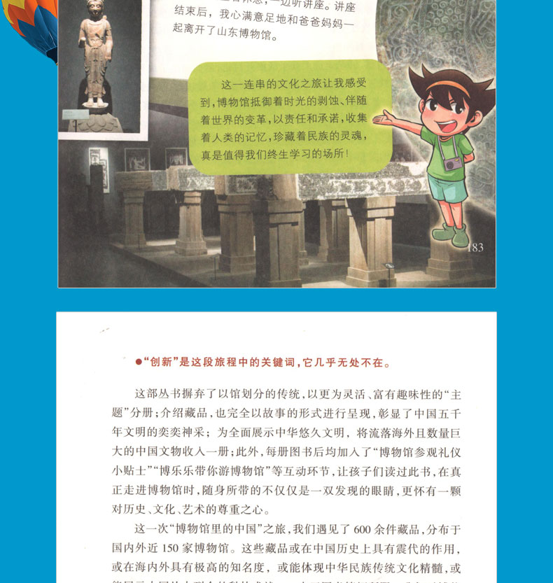每一道纹饰都是一次文明的触碰,每一个标本都是一个不朽的奇迹,每一件藏品都是一段历史的记忆,每一座建筑都是一本石头的史书,这里是博物馆,这里,珍藏着文明的精髓。 这是送给孩子的一座小小家庭博物馆,这里讲述了近千件珍贵中国文物的传奇身世,它们遍布于国内外150余家博物馆,它们反映了时空变换、沧海桑田,反映了朝代更迭、帝国兴衰,反映了文臣治国安民、武将横刀立马的情怀,反映了诗画天马行空、手艺巧夺天工……“博物馆里的中国”按照主题分为十册,分别为流失海外的中国文物、书画雕塑乐器等艺术品、陶器瓷器青铜器等器皿、中国历代科技成就、出土化石、地质学、遗址、建筑、手工艺品、中国近现代革命史。 全书正文介绍该主题下最具价值的藏品,附录包括参观博物馆应遵守的礼仪和全国各大博物馆的参观指南。全书图文结合,故事般的文字生动形象,图片和漫画插图精美,引领读者走进灿烂辉煌的中华五千年文明。 该项目为2014年国家出版基金支持项目。 “博物馆里的中国”是由博物馆的专业人员写给小朋友们的一部丛书,它立足科学性、知识性,介绍了博物馆的丰富藏品,同时注重语言文字的有趣与生动,文图兼美,呈现出一个多样而又立体化的“中国”。 ——潘守永(中央民族大学教授、博士生导师)“博物馆里的中国”一书内容丰富、语言生动,集知识性、趣味性于一体,是小读者了解我国传统建筑文化的一部佳作。 ——吴梦麟(北京市文物局专家组成员、北京石刻艺术博物馆研究馆员)亲爱的小读者们,我盼望在博物馆里能见到你们的笑脸。 ——卢永琇(天津美术馆馆长)