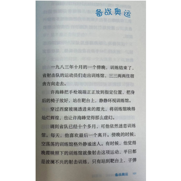 小时候,爸爸给许海峰做的一把弹弓,让他萌生出当“神枪手”的梦想,他钻研弹弓技巧,成了有名的“弹弓大王”。 毕业后,许海峰三次报名参军,要当部队的“神枪手”,却由于年龄等原因屡次被拒,但他没有放弃,数年里从未间断练习射击。 为了梦想,二十五岁的许海峰放弃了供销社的“金饭碗”,进入射击队。作为队里年龄大、基础差的队员,教练对他格外严格,他也格外刻苦训练,每天最早来到训练室,最晚离开。冬训时,在没有取暖设备的室外靶场,他常常一练就是一整夜,从不生冻疮的他,双手长满冻疮。 举枪,瞄准,射击!为了备战奥运会,他制定了细致到每一分钟的参赛方案,一举夺得金牌,实现了中国在奥运会赛场上“零的突破”,也书写了中国走向体育强国的又一灿烂篇章。