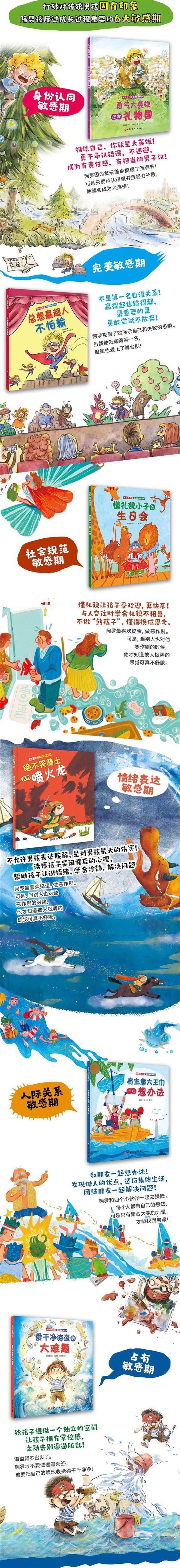 这是一套面向3-6岁男孩子的好性格养成绘本。本书为《不哭骑士战胜喷火龙》,讲述了如何面对被误会与被欺负,阿罗好生气,好委屈,好难过!他哭了么?哭了。但是他哭过之后坚强了!不允许男孩表达脆弱,是对男孩的伤害!陪孩子顺利度过情绪表达敏感期,读懂孩子哭闹背后的心理,帮助孩子认识情绪,学会冷静,解决问题。