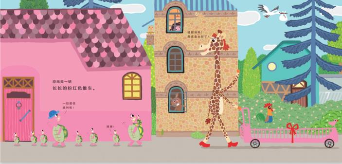 动物朋友们都带着各式各样的礼物去祝贺,有长长的、圆圆的,还有香香的。