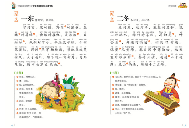 《声律启蒙》是一部关于诗韵的启蒙著作,是儿童学诗的入门读物,由清代车万育编撰而成。《声律启蒙》按照古代通行的韵部编排,每个韵部编成若干段押韵的文字,每段都由两两相对的三字句、四字句、五字句、六字句、七字句等组成,不仅对仗工整,语言流畅,读起来朗朗上口,而且知识性和实用性高度统一。其中涉及天文、地理、历史、文化等多方面的知识,让人们在学习诗词技巧的同时,还能广泛涉猎,得到中华传统文化的有益熏陶。