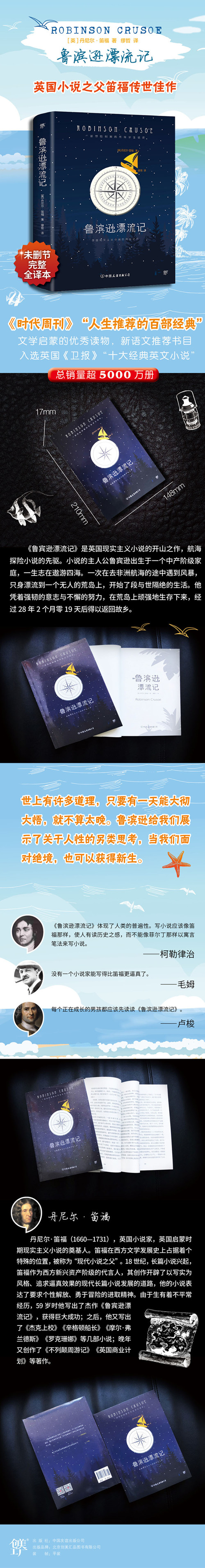 《鲁滨逊漂流记》是每个孩子都应该读的成长之书,是文学启蒙的优秀读物,新语文!激发精神成长之书,带给你勇气和信心。面对困难,永不妥协!