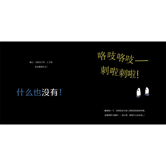 这是一本关于“没有”的书。 这本书里可没有仙女、彩虹、火箭……只有“没有”。 那么,到底什么是“没有”呢? 如果你把房间里的玩具都收拾干净,地板上会有什么?“没有”。 洗澡的时候,你身上穿了什么?“没有”。 晚上关灯睡觉,你会看到什么?“没有”。 本书用幽默风趣的文图,带领小读者探索“有”“无”的概念。