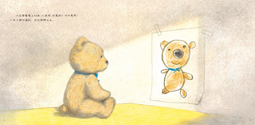男孩给心爱的小熊画了一幅画像,但小熊并不满意。直到一阵风吹跑了画像,小熊这才逐渐发现自己有多么喜爱这幅画。男孩回来后,看到地上皱皱的画和滚落到地上的小熊,便明白了一切。他细心地将画重新粘好,并告诉小熊:“我非常喜爱这幅画,因为这画中画的是你。”小熊开心极了,越看这幅画,越觉得那就是自己,并不断重复着:“你就是我,我就是你。”作者意在用一个小故事向读者阐释“爱与被爱”的深刻意义,在这个过程中,他们逐渐建立起了对自我的认知。