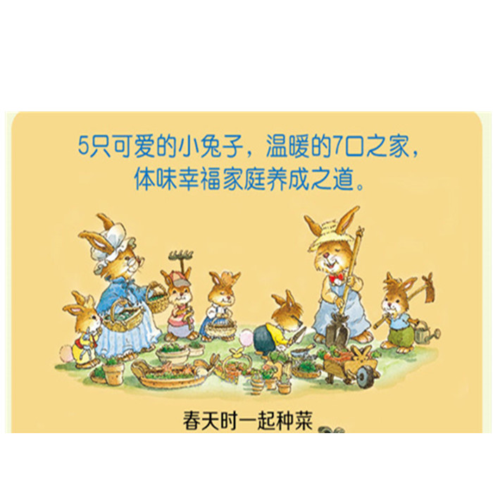 这是一套来自法国的绘本,适合2-6岁孩子阅读。套书共20册,包括辑“我不怕困难”和第二辑“我会爱自己”,每册一个小主题,包括解决问题、帮助别人、保护自己、安全意识等等。这套书讲述了五只性格迥异的小兔子在爸爸和姑妈的细心教育下,彼此相互帮助,在亲情与爱的滋养中快乐成长的故事。一个个奇妙、有趣、刺激的小故事,潜移默化地培养孩子的好习惯、好品格,对父母的家庭教育也具有很好的指导意义。
