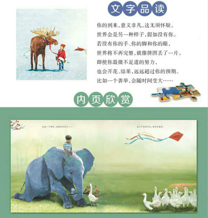 ☆送给孩子的珍贵礼物和完美的家庭藏书! ☆作者用唯美的图画、诗意的语言,描绘了每个孩子来到这个世界的独特意义! ☆以外化的方式,形象地告诉孩子,他们的每一个行动,都会促进世界的改变! ☆让孩子体会生活中有各种画面,无论经历哪一种,他们都是被爱着的!