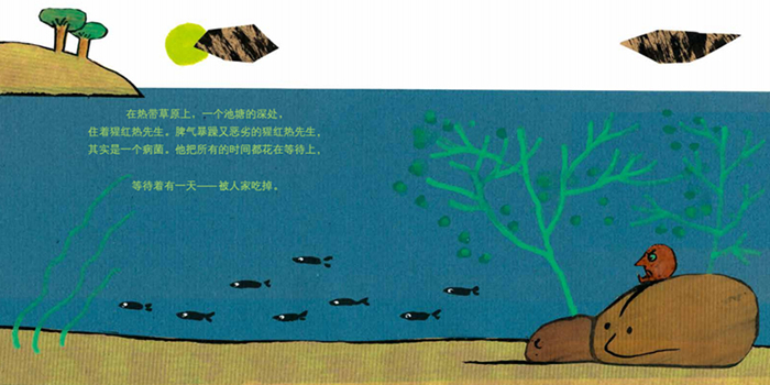 猩红热先生是一个病菌。在草原上的一个池塘里,他等啊,等啊,等着有人把他吃掉。一条圆圆肥肥的虫子经过,啊呜,虫子把猩红热先生吃进了肚子里。一条贪吃的鱼经过,啊呜,鱼把圆圆肥肥的虫子一口吞下。一只鳄鱼经过,啊呜,鳄鱼对着鱼一口咬下去……没过多久,草原上的动物们都得了传染病。那么,猩红热先生真的所向无敌吗?