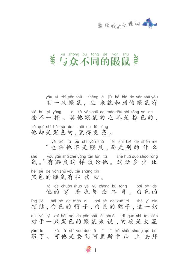 有一只蓝狐狸,他经过森林,总要鼓足了劲儿冲过连续的七棵树。为什么呢?因为树上有小鸟儿,小鸟儿总会往蓝狐狸的头上拉屎。蓝狐狸非常厌恶这些小鸟们……可事实上,当他看到小树上的小鸟漂亮的羽毛、听到了小鸟悦耳的歌声,十分惭愧……本书为王一梅的短篇童话集,收录了其*代表性的作品。“王一梅飞翔经典童话”系列图书一共8册,分别为:《蓝狐狸的七棵树》《书本里的蚂蚁》《贝壳鸟》《河马的绝招》《蔷薇别墅的老鼠》《胡萝卜先生的长胡子》《糊涂猪》《乌鸦的新衣》。