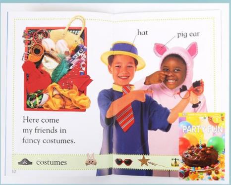 本册为《PARTY FUN》趣味聚会介绍聚会时的活动、道具和食物,包括balloon,dessert,cake等等。