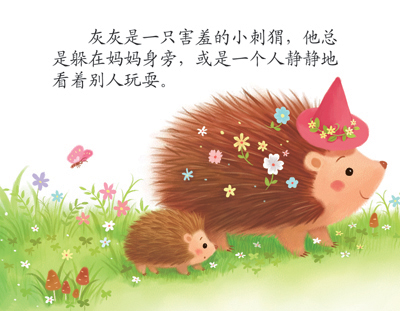 做最棒的自己:小刺猬灰灰长了一身硬硬的尖尖的刺,他觉得自己一点也不可爱,于是总是一个人躲在角落里。有一天,大家在讨论自己哪里棒,这时,一阵怪风把大家和灰灰都吹到空中……摔得东倒西歪的灰灰被大家发现了,大家还发现从草丛里滚落出来的灰灰身上扎满了小果子和花朵。“好可爱!”大家都称赞灰灰,而灰灰发现自己其实也很棒,就再也不躲在角落了,和大家成了好朋友!