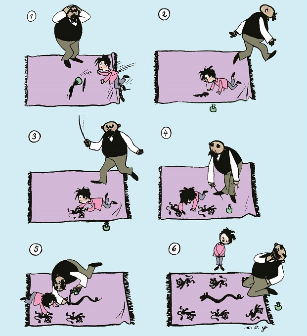 《父与子》是1933-1937年陆续连载于《柏林画报》上的漫画作品,战后才得以集结出版。全书内容取材于作者卜劳恩与父亲和儿子的生活点滴,凝聚了作者对父亲的深深思念和对儿子的浓浓爱意。书中有对于普通生活天马行空的想象力,有偶获巨额财富后依旧保持本心的生活观,有面对困境的乐观精神和非凡的创造力;而在这所有爆笑捧腹的图画背后,则是饱满到溢出的亲情和爱。