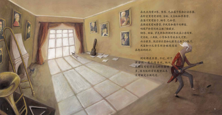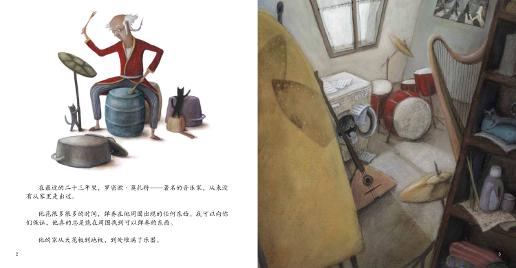 1.良好的兴趣爱好对孩子的全面发展至关重要。书中主人公罗密欧·莫扎特对音乐非常热爱,他无时无刻不在琢磨着音乐。这份执着很有感染力,可以无形中向宝宝传输正能量,让宝宝也能有一个健康的兴趣爱好,并学会坚持。而且,全书的画面感很好,色彩鲜艳,格调明快,很吸引宝宝!