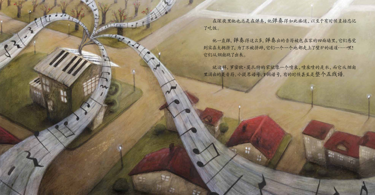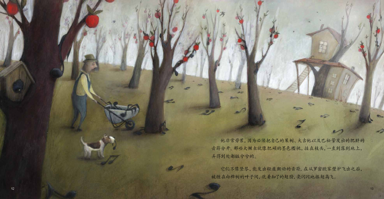 2.这是一本很有想象力的绘本。书中的音乐是看得见摸得着的,所有的音符都是有体积有温度的,它们能够随风飞舞,还能把苹果烤熟……刚翻开几页,这些夸张的想象就让孩子欢呼雀跃。我想这本书肯定是买对了。