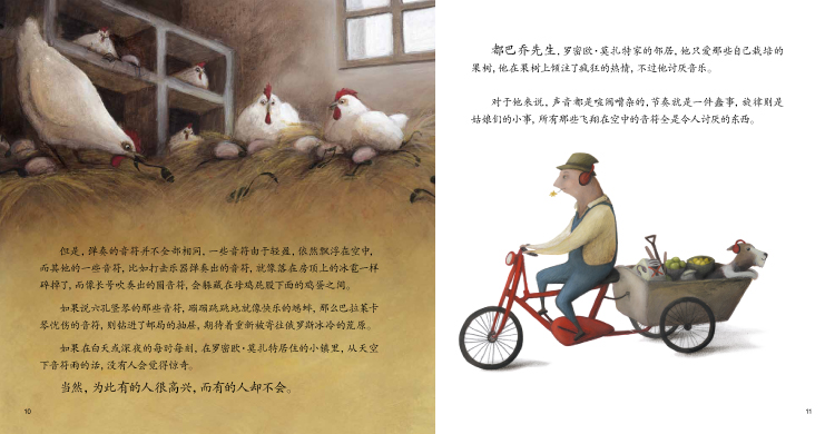 罗密欧· 莫扎特非常痴迷音乐,他每天都在从早到晚演奏音乐。他的邻居是一位热爱果园但是非常讨厌音乐的人。罗密欧· 莫扎特整天弹奏都快让邻居受不了啦,但是有一天罗密欧· 莫扎特发生了意外,邻居的世界顿时安静下来了,邻居反而觉得不习惯了,后来他们商定一个能让大家都高兴的好办法。阅读本书,能让孩子们学会理解他人。