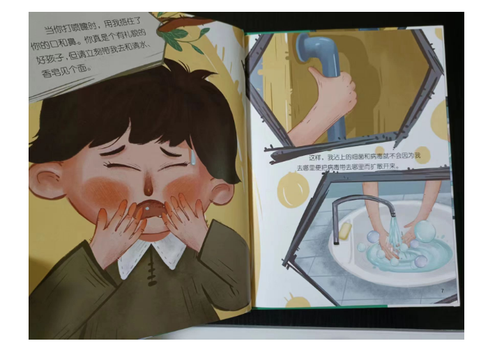 幼儿卫生防病毒绘本,洗手不偷懒,细菌被赶走