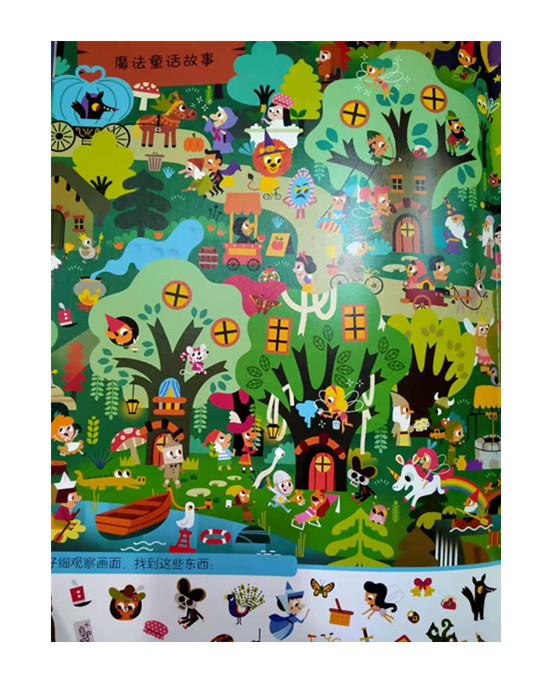 本书是一本大开本的游戏书,书中设置了9个完全不同的游戏场景:冒险故事、魔法童话故事、狼的故事、骑士公主故事、动物故事、怪物故事、海洋故事、世界故事、圣诞故事。每个场景都设置了任务,读者需要从画面中找出相应的答案。