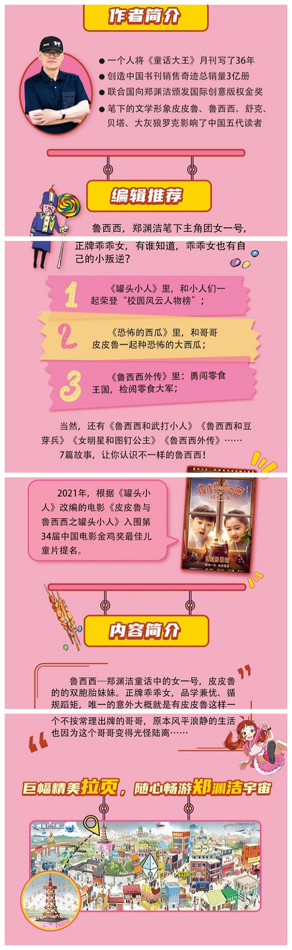 ★荣获“联合国全球十大图书”★本书累计发行逾五百万册,影响了中国三代孩子★郑渊洁童话中的女一号:鲁西西,她是皮皮鲁的双胞胎妹妹。★鲁西西乖巧善良、聪明好学,和哥哥皮皮鲁性格截然不同。但是,身为女孩子的鲁西西也和哥哥一样充满了正义和勇气。★本书精选了7篇鲁西西的故事独立成传,快来一起感受鲁西西的“郑”能量吧。