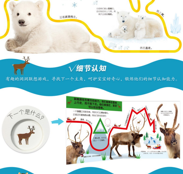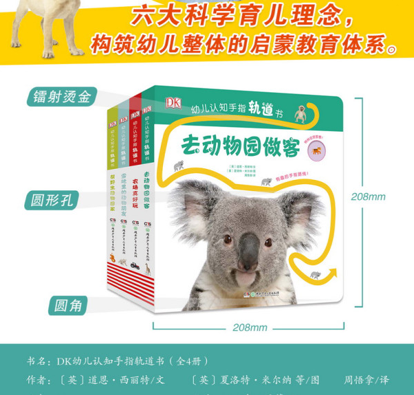 该书自英国DK出版公司引进的幼儿启蒙纸板书,共8册,本册主题为“动物园”,主要介绍了通常在动物园能见到的各类动物,如考拉等。本书根据幼儿的阅读喜好,精心设置了百变创意的手感触摸轨道,以及创意小洞,锻炼幼儿的小手精细度。同时,情景式联想游戏,促进幼儿的观察力、想象力,让小脑袋瓜越学越机灵。该书图案轮廓鲜明,色彩丰富柔和,能极大地引起幼儿的兴趣,刺激幼儿的视觉发育。圆角、耐撕等针对幼儿阅读习惯的设计,保证了该书的极高品质。