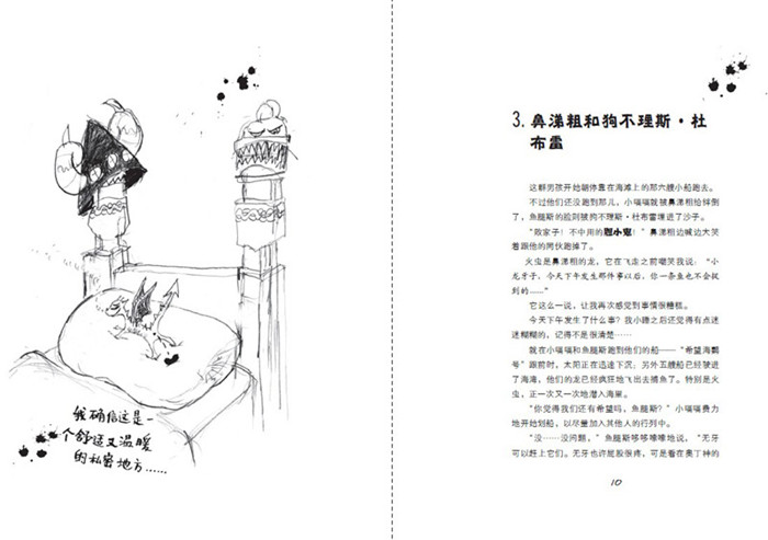 克蕾西达·考威尔编写的《驯龙高手(我是火龙我驯服了维京人)》是一本童心洋溢的冒险成长小说,被欧美儿童文学界誉为“后哈利波特时代”*伟大的儿童文学作品。它以绝妙的幻想为基调,以维京部落男孩——小嗝嗝·霍兰德斯·黑线鳕三世的回忆录为线索,描写了小嗝嗝与自己的小龙——“无牙”一起,依靠智慧、勇气、无私的友谊,带领小伙伴,驯服种种恶龙,*终走向成功的故事。全书曲折丰富,情节多变,悬疑、浪漫、奇幻、传奇色彩等兼而有之;全书采用涂鸦式插图,图文结合,生动传神,活灵活现,营造出一种轻松幽默、兴趣盎然的情境。